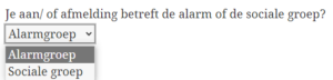Aanmelden voor sociale appgroepen gaat op dezelfde wijze als de aanmelding voor onze alarmgroepen. Het enige wat nodig is, is dat je in het aanmeldformulier aangeeft dat je je wilt aanmelden voor de Sociale groep, zie afbeelding: